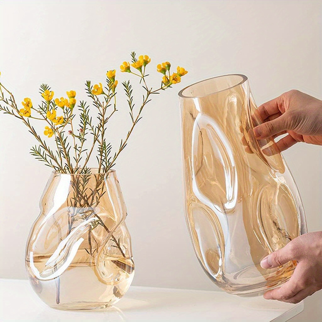 Glass Decorative Vase Modern Transparent Decorative Glass Vase - Irregular Shaped for Home Living Room and Office Desktop Decoration - Gift Vas